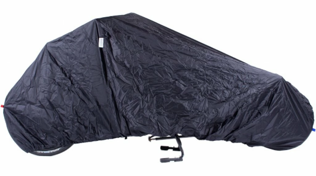 La bâche tous temps protège votre vélo lorsque vous le garez à l’extérieur. Et lorsque vous n’utilisez pas le vélo, la bâche peut être facilement pliée dans un petit sac pratique.